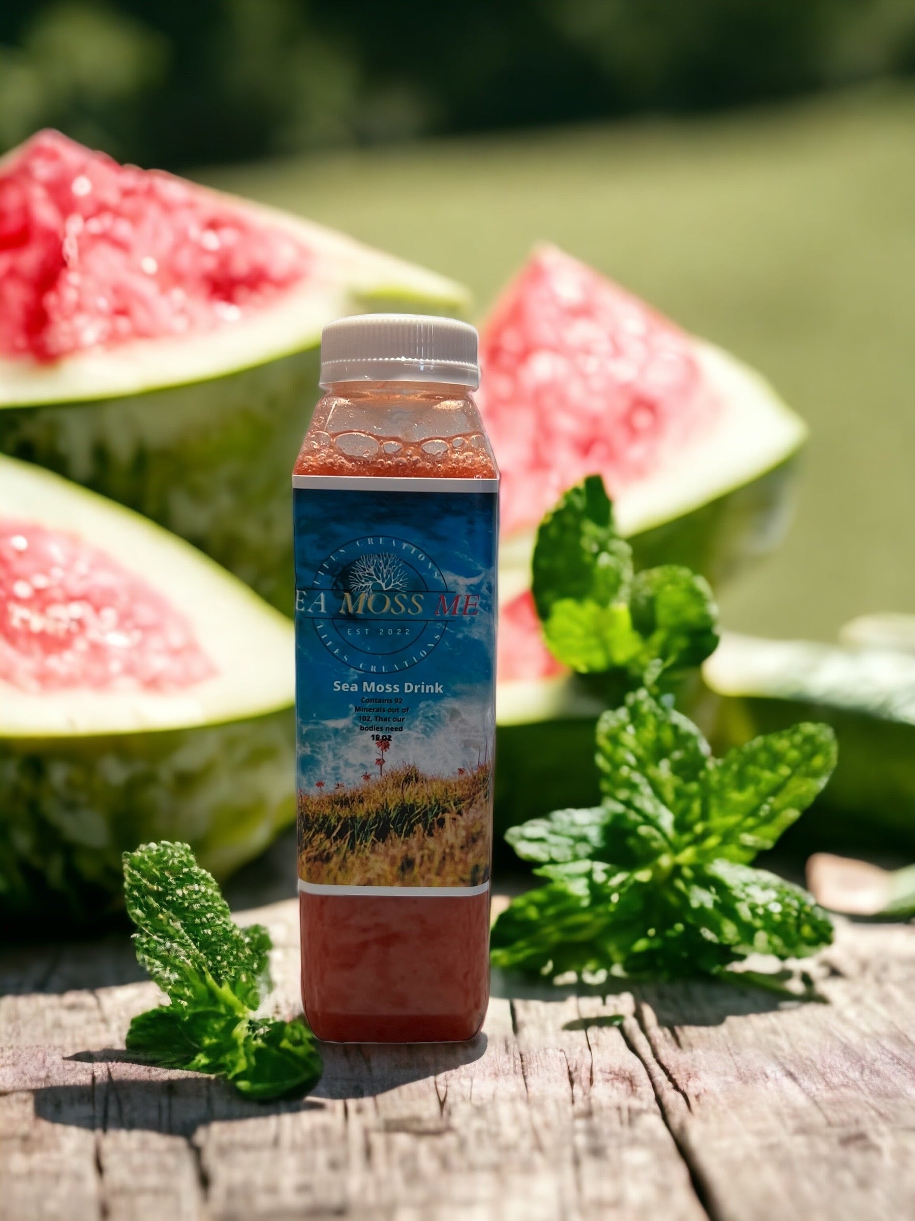 Sea Moss Watermelon Drink is a delightful fusion of natural goodness and vibrant flavors. This exquisite beverage combines the nourishing benefits of sea moss with the mouthwatering essence of juicy watermelons, with a hint of mint, creating a truly unique and revitalizing experience for your taste buds. Our juice is organic, with no preservatives.